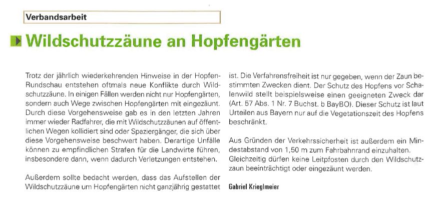 Gerichtsurteil zur ganzjährigen Einzäunung von Hopfengärten